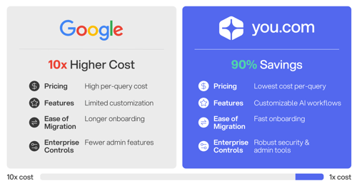 In short, you.com delivers results that are deeper, more reliable, and built to support the future of AI — not just yesterday’s search.